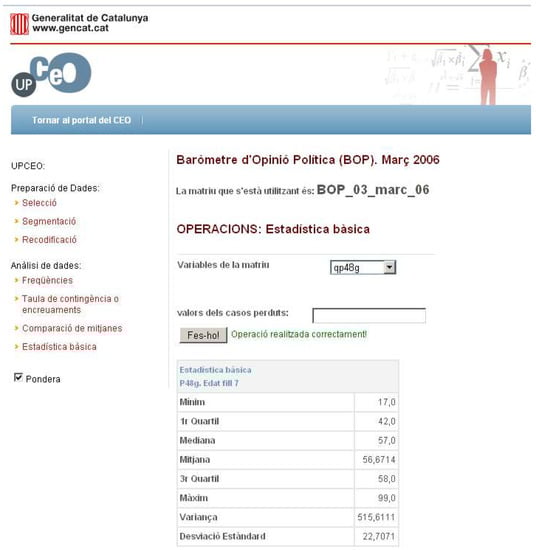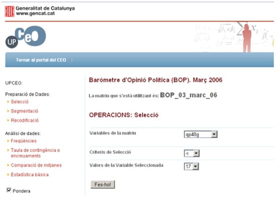 The primary goal of this project is to develop a methodology that leads to the implementation of a tool, which is currently in the production stage, to analyze statistical information online. To do so, we first need a mechanism to manage the large amount of data generated by opinion polls. This mechanism must ensure that the information remains safe and that the data analysts can work with it. Second, another mechanism is required to define which information can be published on the web and which is not ready to be published yet (e.g., information that must be anonymized). Finally, a mechanism is also required to allow the mass media, external researchers, and the general public to freely work with the data to obtain new information. To solve these problems, a methodology was defined with the aim of simplifying the interaction with the datasets for all potential users. This methodology was successfully applied on the development of a tool named UPCEO.