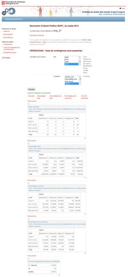 Since the access to the statistical information is based on the R language, new websites or applications (such as JGUIforR) can be developed that access the data through the use of R statements. This implies that the application goes beyond the definition of an API because it uses a statistical language. The power and extensibility of R ensures that we can obtain all the information desired, and the user must only define the subset (if it is needed) of the R instructions that an external user (application or website) can execute. Currently, researchers from different Catalan institutions are building their own mash-ups using this type of application. In the future, more capabilities will be added to the application by including new R language instructions open to public use. There is an additional goal of open access to the data generated by public institutions, allowing them to access all the information from the CEO servers and define the queries needed for each application (in the broad sense that an application can be a simple query that can reside in a spreadsheet, or a complete web application with various mash-ups).