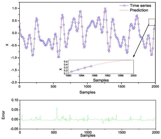 Figure 11 shows the experimental results of the five-layer MLP, using the validation dataset and six steps ahead prediction with the chaotic time series with MLE = 0.3761. The MLP achieves an RMSE = 0.019.