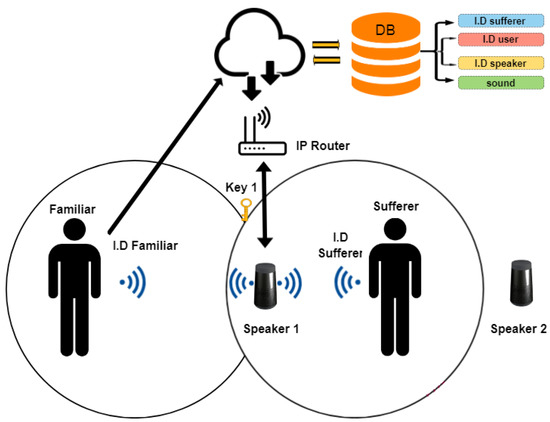 The proposed system has three types of users: (i) the Familiar, (ii) the Sufferer, and (iii) the Administrator. The user Familiar is the person whose identity is augmented by a digital Acoustic Identification (ID) signal, via a device that he/she carries (smartphone, smartwatch, etc.). This device provides a unique acoustic tag of the user for identification purposes to the system. Then, this tag is used by the system to reproduce a sound that may be recognized by the Sufferer and be associated with that Familiar person that was identified.