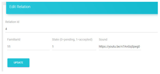The server application was developed on Azure as a web service. The database schema was designed using MSSQL, and all the currently developed services/REST API were developed using PHP. All the users of the system (Sufferer, Familiar) had to register and get their unique ID’s. Therefore, there was a service designed to handle the administrator actions along with some views. In the following figures (Figure 6 and Figure 7) are the views of the administrator’s dashboard and the action to edit a correlation. Moreover, there are services to handle the actions of the speakers and the familiar. Those will be described in the following subsections.