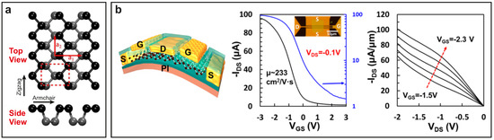 Black phosphorus as a novel 2D material for flexible sensors. (a) Crystalline structure of single layer BP (phosphorene). Adapted from [271]. (b) TFT based on BP for Gigahertz frequency applications. Reprinted with permission from [264]. Copyright 2016 American Chemical Society.