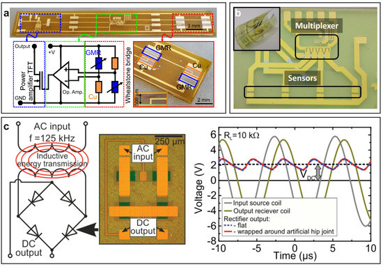 - Fuketa, H.; Yoshioka, K.; Yokota, T.; Yukita, W.; Koizumi, M.; Sekino, M.; Sekitani, T.; Takamiya, M.; Someya, T.; Sakurai, T. 30.3 Organic-transistor-based 2kV ESD-tolerant flexible wet sensor sheet for biomedical applications with wireless power and data transmission using 13.56MHz magnetic resonance. In Proceedings of the 2014 IEEE International Solid-State Circuits Conference Digest of Technical Papers, San Francisco, CA, USA, 9–13 February 2014. [Google Scholar] [CrossRef]