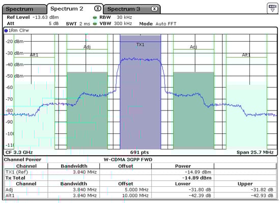The measured spectrum of the designed Doherty power amplifier at an average output power of 40 dBm.