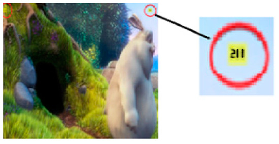 (a) Each transmitted image was labelled by software with an image serial number, starting with 1 and sequentially increasing to the last image. Two very small identical labels were used. The labels were inserted on the top left and right corners of each transmitted image. Its repetition on two corners was to provide an alternative label in case one label became unreadable due to distortion by noise. The labelling was required to allow the received images to be compared with the corresponding transmitted images.