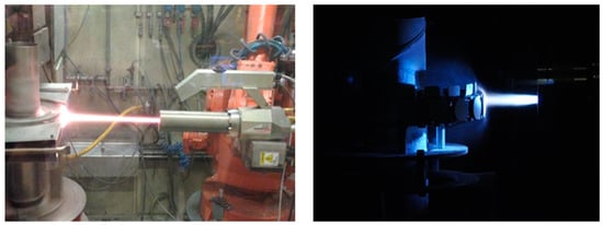 Emergent thermal spray techniques of (left) high velocity air-fuel (HVAF) and (right) suspension plasma spraying.