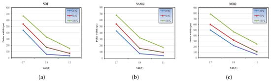 - Naseer, R.; Draper, J.; Boulghassoul, Y.; DasGupta, S.; Witulski, A. Critical charge and set pulse widths for combinational logic in commercial 90nm cmos technology. In Proceedings of the 17th ACM Great Lakes Symposium on VLSI, Stresa, Lago Maggiore, Italy, 11–13 March 2007. [Google Scholar]