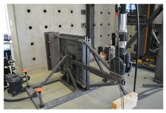 The front panel of the fixture was attached to the MTS hydraulic actuator by means of a pin connection at the end of a 1.37 m arm that allowed the necessary rotational shear force to develop.