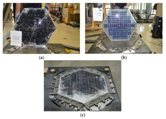 The above four tests were performed on Solar Roadways “SR3” prototype panels or solar road panels (SRP). Testing was performed on the Marquette University (MU) campus in the Engineering Materials and Structural Testing Laboratory (EMSTL) and the SR Pilot Project area. Detailed results of the first three tests have already been published []. The remaining sections of this paper present the materials and prototypes (Section 2), a brief review of the first three engineering tests (Section 3 and Section 4), a detailed account of shear testing (Section 5), and the conclusions (Section 6) and acknowledgements.