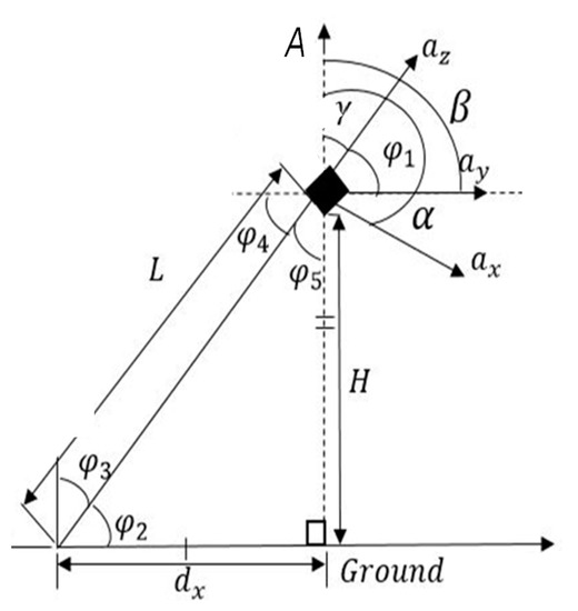 The angles , and and the inclined vertical height from ground (H) are defined as indicated in Figure 2.