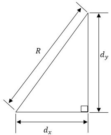 Alternatively, using the Pythagoras theorem, and can also be obtained from Figure 3 as defined by Equation (6), where R is the resultant displacement on ground (i.e., the resultant displacement in the x and y axes) from the z – axis, when is negative and when is negative.