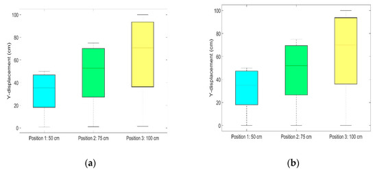 The displacements in Table 2 correspond to positions 1 (i.e., 50 cm), 2 (i.e., 75 cm) and 3 (i.e., 100 cm). They were determined using: , , , respectively.