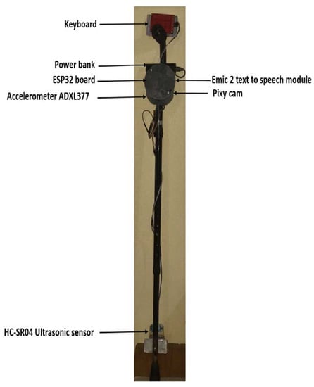 - Shah, H.R.; Uchil, D.; Rane, S.S.; Shete, P. Smart stick for blind using arduino, ultrasonic sensor and android. Int. J. Eng. Sci. 2017, 7, 10929–10933. [Google Scholar]