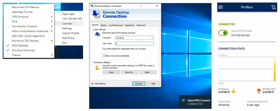 - Feilner, M.; Graf, N. Beginning OpenVPN 2.0.9. Build and Integrate Virtual Private Networks Using OpenVPN; Packt Publishing: Birmingham, UK, 2009. [Google Scholar]