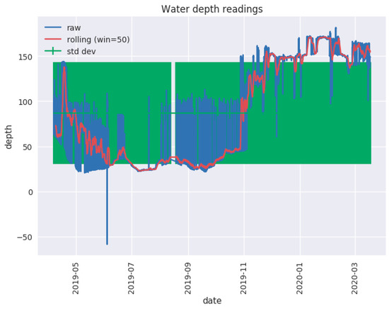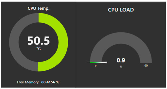 Further, as shown in Figure 10, dashboards for Raspberry Pi mobile devices are designed to monitor resource overheads and utilization, such as memory and CPU load, including the CPU temperature. We considered the design of such a dashboard for future power consumption minimization and optimization as it is intended that these devices would eventually be running from solar power resources. To illustrate the monitoring of water level trends over a longer time interval, we provide from publicly available resources [87,88], the outputs of data analytics using software tools in Figure 11. Such graphical trends would provide data insights for making an informed decision for remotely operating the water tank sensors with a user-friendly mobile App. In addition, using a cross-reference against weather data, many predictive models could be employed to make decisions on the usage of water. For instance, when the water level drops, adjustments to water consumption could be programmed to water the farm appropriately. Similarly, data from weather forecasts and rain patterns could be correlated with the water tank data. For instance, the correlation between the water tank level and the weather condition could be determined. With such data analytics, more informed and intelligent decisions could be made for both water storage and water usage. Various trends on water inflow and outflow of rainwater and town water tanks could provide useful data insights to identify correlations among the control parameters.
