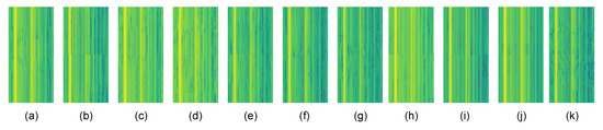 Examples of activity images from 11 classes for the DST transform. (a) eat meal/snack; (b) falling; (c) handshaking; (d) hugging other person; (e) make a phone call/answer phone; (f) playing with phone/tablet; (g) reading; (h) sitting down; (i) standing up; (j) typing on a keyboard; (k) wear jacket. Figure best viewed in color.