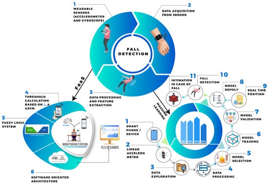 Moreover, wearable sensors (i.e., accelerometers and gyroscopes) that stimulate human activity monitoring using a rule-dependent Fuzzy Logic System (FLS) have been demonstrated [9]. Different machine learning algorithms, such as k-NN, decision tree, random forest and extreme gradient boosting, and Artificial Neural Networks (ANNs) detect a fall using wearable sensors. However, there are few research studies that have been carried out to determine comparative analysis of real-time fall detection using fuzzy logic web services and machine learning for analysing the performance of a real-time fall detection system. In summary, the main contributions of this paper include:
