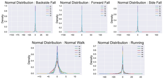 Normal distribution of the obtained accelerometer and gyroscope sensors.