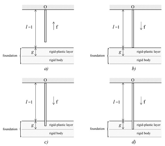 The four cases of contact between the rod and the foundation: (a) The case ; (b) the case ; (c) the case ; (d) the case .