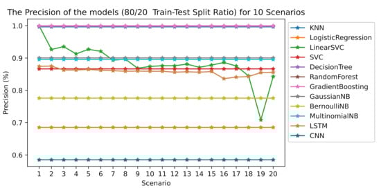 A comparison of the precision of the models for an 80/20 train–test split ratio.