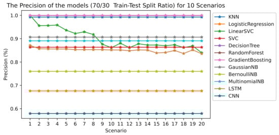 A comparison of the precision of the models for a 70/30 train–test split ratio.