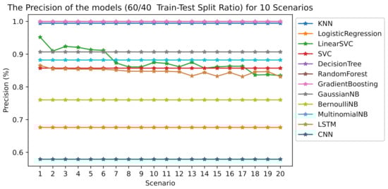 A comparison of the precision of the models for a 60/40 train–test split ratio.