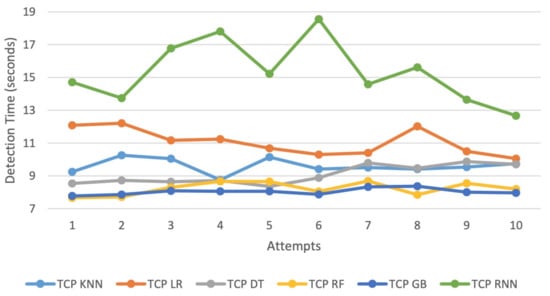 Figure 17 shows the detection time of the LSTM model when a 80/20 train–test ratio was used.