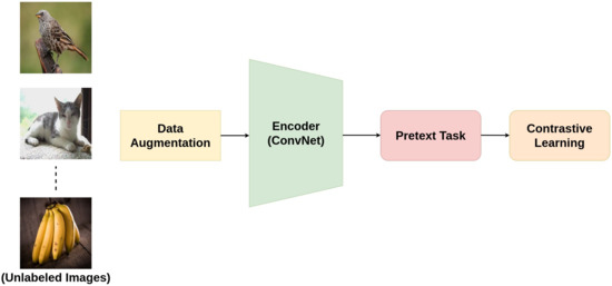 - Chen, T.; Kornblith, S.; Norouzi, M.; Hinton, G. A Simple Framework for Contrastive Learning of Visual Representations. arXiv, 2020; arXiv:2002.05709. [Google Scholar]