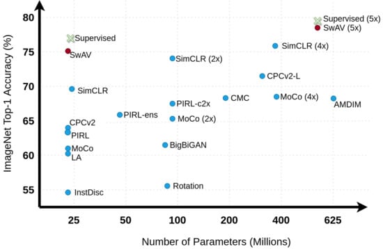 - Goyal, P.; Mahajan, D.; Gupta, A.; Misra, I. Scaling and Benchmarking Self-Supervised Visual Representation Learning. arXiv, 2019; arXiv:1905.01235. [Google Scholar]