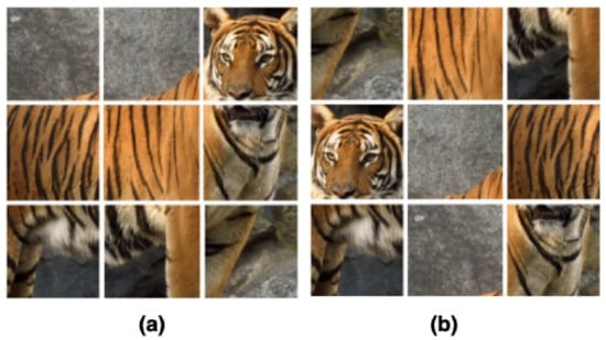 - Noroozi, M.; Favaro, P. Unsupervised learning of visual representations by solving jigsaw puzzles. In Computer Vision—ECCV 2016, Proceedings of the European Conference on Computer Vision, Amsterdam, The Netherlands, 11–14 October 2016; Springer: Berlin/Heidelberg, Germany, 2016; pp. 69–84. [Google Scholar]