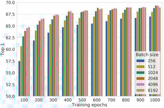 - Goyal, P.; Dollár, P.; Girshick, R.; Noordhuis, P.; Wesolowski, L.; Kyrola, A.; Tulloch, A.; Jia, Y.; He, K. Accurate, large minibatch sgd: Training imagenet in 1 h. arXiv, 2017; arXiv:1706.02677. [Google Scholar]