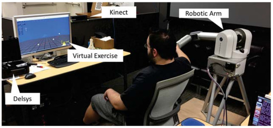 - Lioulemes, A.; Theofanidis, M.; Kanal, V.; Tsiakas, K.; Abujelala, M.; Collander, C.; Townsend, W.B.; Boisselle, A.; Makedon, F. MAGNI Dynamics: A vision-based kinematic and dynamic upper-limb model for intelligent robotic rehabilitation. Int. J. Biomed. Biol. Eng. World Acad. Sci. Eng. Technol. 2017, 11, 158–167. [Google Scholar]