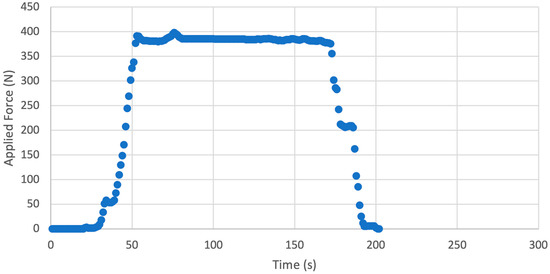 Testing with this version of the screw used the same method to startup and acquire data as with the roller screw test. However, for this series of testing, the lead screw is twisted from the top until no more force can be applied. The same operator was used in the manual twisting of this mechanism as in previous tests. The performance of the direct press screw was measured during 10 consecutive tests in terms of applied force over a duration. The direct press screw was rotated to apply force onto the load cell until it was no longer capable of completing this operation. After a varying duration of time, the force was then removed from the load cell by rotation of the screw in the opposite direction until it was no longer touching the load cell top screw plate.