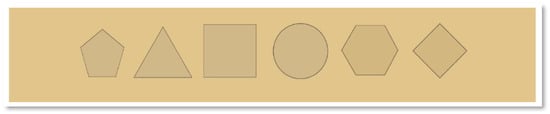 For puzzle design-production, we proceeded with a wooden shape puzzle design. The shapes were designed in two versions as two difficulty level (Figure 8, Figure 9, Figure 10 and Figure 11). The first level contains only square shapes, so students have to place the correct block considering only the activity depicted on the symbol (Figure 8 and Figure 9). The second and easiest level (Figure 10 and Figure 11) includes geometric shapes that guide students alongside the symbols (essentially, the game provides built-in gameplay that promotes constructive thinking) [83]. The two difficulty levels were determined based on the principle of equity so that no student is excluded from the learning experience. Learning shapes is resulting in a side benefit [67].