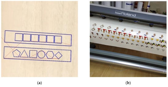 To create the wooden puzzles, shapes were designed with CorelDRAW® software and then were cut with CNC (computer numerical control) wood route by a carpenter (Figure 12a). The symbols were then printed on a vinyl sticker (Figure 12b).