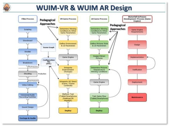 In such an educational environment, the transmedia storytelling process can be a valuable tool, a novel educational strategy and a resource for deeper learning through learners’ participation, experimentation, and expression [21]. WUIM design and development encompass the most modern technologies so far, such as video production with 360-degree cameras, AR, and virtual reality (VR), combined with gamification techniques and traditional educational puzzles, while providing technical and scientific know-how to school community, i.e., teachers, students, and parents, to develop their own stories in the context of transmedia learning. The overall WUIM project includes three games: (1) WUIM-Puzzle, (2) WUIM-AR, and (3) WUIM-VR.