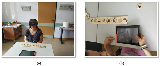 The Unity and Vuforia platforms were used to develop digital applications and a 360-degree camera was used to create the content. The devices needed for applications developed with digital technology are everyday devices such as smartphones and tablets, virtual reality glasses to which smartphones are adapted, headphones, and, if a child has head instability due to spasticity, controllers (Figure 6).