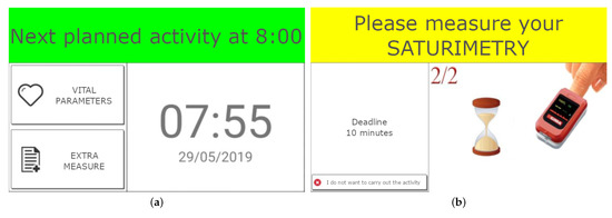 Parents/caregivers of the experimental groups have been trained in an approximately 2 h session on the use of the devices by the technical and medical staff involved in the project. In particular, doctors explained how to measure the required vital parameters, such as the position of the electrocardiograph on the body or SpO; engineers trained parents and caregivers about the use of the tablet. Moreover, all devices have a rechargeable battery. Battery chargers have been given to the patient’s family with instructions on how to keep the battery charged.