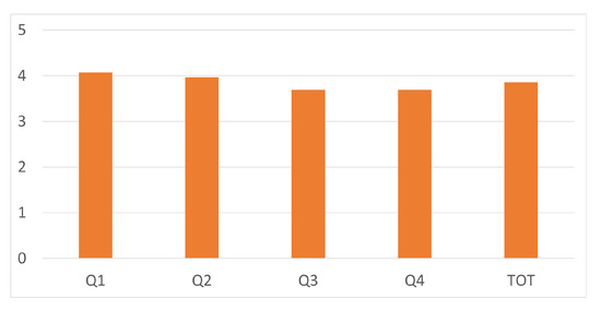 At the end of the experiment, parents/caregivers also filled a dedicated questionnaire regarding the UE with telemedicine platforms. It consists of four questions on a Likert scale (score from 0 (low) to 5 (high)), regarding the ease of acquisition (Q1), the ease of data transmission (Q2), the level of comfort in managing the pathology with the help of the devices (Q3), and the level of interest in using the devices even at the end of the experiment (Q4).
