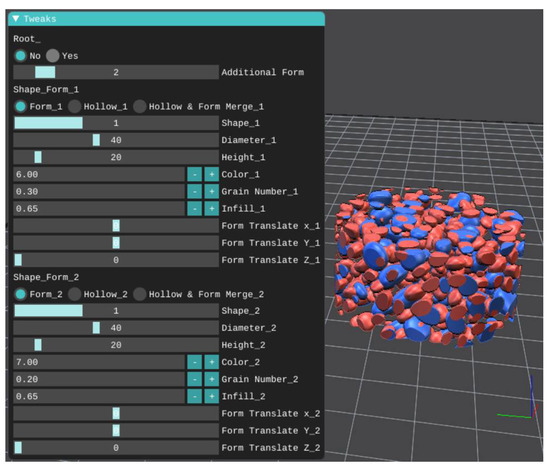 Most research studies are based on X-ray tomography images to generate a digital model of the soil and then fabricating it with 3D printing. Other articles, however, adopt another approach that proposes mathematical modeling of the soil structure. Ngom et al. [15] propose the modeling of soil microstructures using generalized cylinders, with a specific application to pore space. As the pore space defines a complex volume shape that cannot be approximated using simple analytical functions, Ngom et al. propose representing this shape using an approximation by means of generalized cylinders. This modeling is, however, not oriented towards the fabrication of soil structures by 3D printing but aims at simulating biological dynamics. Buj-Corral et al. [16] provide a methodology to design porous structures to be 3D printed. Their model is defined with some theoretical parallel planes, with each plane having randomly distributed points on it. Then, the points are joined with lines using the marching cubes algorithm. This approach is interesting, but since the generation of points is random, this modeling is not reproducible.