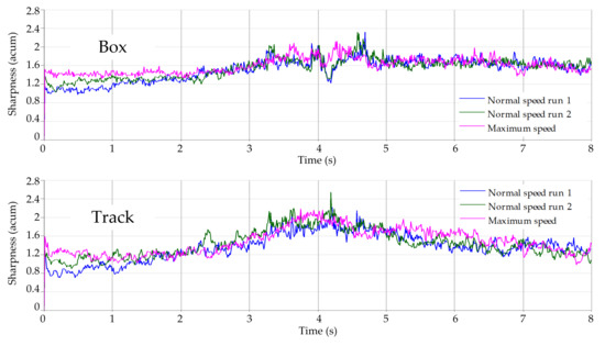 26] with the following parameters: spectrum resolution of specific loudness: 1/8 bark; time interval: 10 ms. The sharpness was analysed using the Zwicker method [