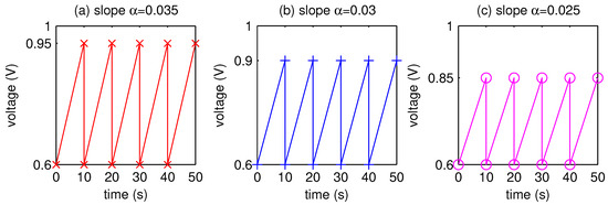 The five voltage cycles with slopes: (a) . (b) . (c) (V/s).