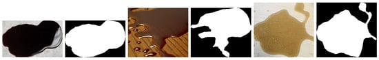 Figure 2. Liquid dirt samples and the masks resulting from the segmentation.