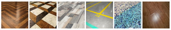 Another criteria for choosing floor images was the following: Some images only represented a clean floor, while others had some objects such as walls, doors, chairs, shoes, wires, and so on. These floors that contain objects were added to help the YOLOv5 models distinguishing between them and actual dirty spots. In order to blend solid dirt and liquid dirt only into the floor, floor images that contain objects were segmented. This resulted in 496 types of floor. Figure 4 illustrates clean floors with no objects.