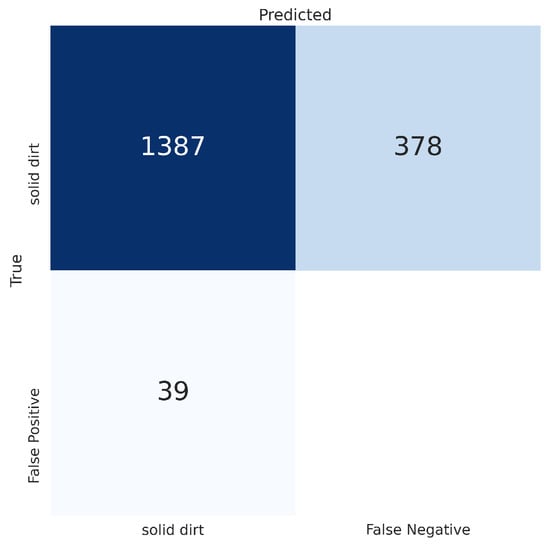 Figure 14. Confusion matrix of YOLOv5m6 on the ACIN dataset when trained for one class: solid dirt.