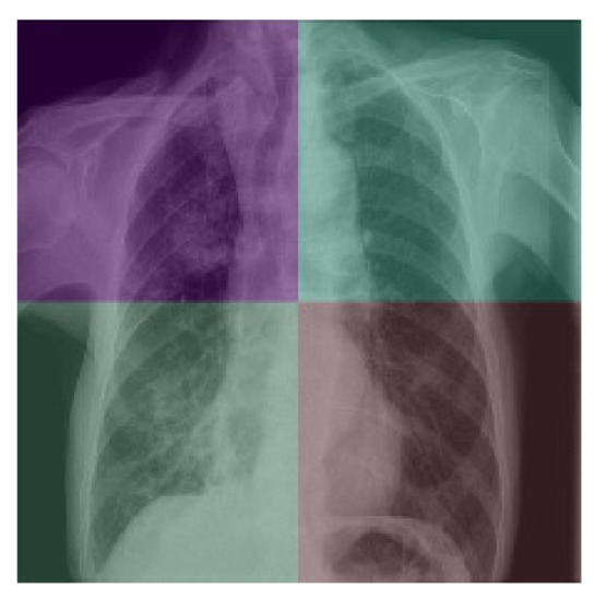 Color inversion flips the grey scale value (0–255) of each pixel in the image and produces an inverted image. We found this to be mainly useful for looking at X-rays from a human perspective, as black is easier to see against white than vice versa. Color inversion did not prove very useful for the model accuracy, but still has importance for helping doctors in their diagnosis. This is seen in Figure 3d.