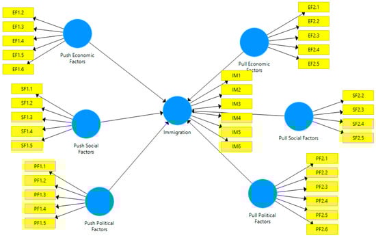 Table 4 presents the correlation analysis of the pull and push factors for both Romania and Poland, while Figure 2 shows the constructs applied in analyzing the push and pull variables in the study. The results indicate that Romania observed a significant and positive correlation among the push and pull factors. In addition, for Poland, the statistics indicate that there was a significant and positive correlation among all push and pull factors.