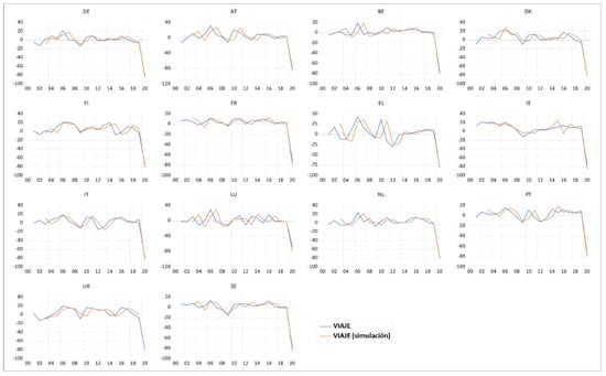 Simulated year-on-year rates of the variable TRAVEL in the ECM. Source: Own elaboration.