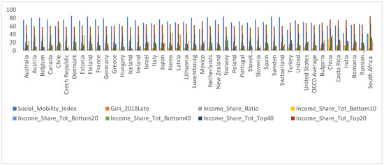 The dataset is a cross-sectional sample of 44 countries and includes the 2018 social mobility index, the 2018 or latest Gini coefficient index representing income inequality, the 2018 or latest income ratios, the 2018 or latest income share of total for the bottom 40, bottom 20, bottom 10, top 40, top 20, and top 10 household income; and the latest available poverty rates by age groups (children, youth, adult, elderly, and working poor). The dataset is collected from the OECD Income (IDD) and Wealth (WDD) Distribution Databases, and from the world economic forum (Geiger et al. 2020).