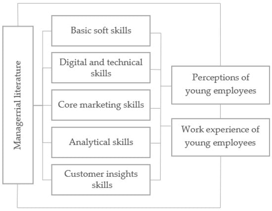 This study was conducted by utilizing former research results based on expert interviews to determine the most outstanding digital marketing skills. Working from these findings, we utilized a measurement scale to examine the perceptions of young employees. A quantitative survey was implemented surveying three different segments of university students. This paper makes several contributions to future academic research as follows. First, we collected the skillset based on former results to develop a measurement instrument. Then, we examined the reliability of the measurement scale that enables later comparative research. The result of the current study provides a base for comparison of perceived importance of employability skills. It is possible to incorporate the skillsets that were collected into the training structure by identifying the educational aims and skillsets. As a result, the students will have a better understanding of these, and it is possible to draw attention to skills that may have been overlooked by students. The research framework is visualized in Figure 1.